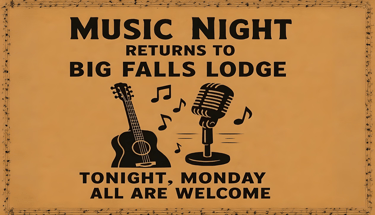 We appreciate all the support from the community as these nights are not just about music but about bringing people together. Your participation makes each night a success. So mark your calendars, invite your friends, and let’s keep the music playing at Big Falls Lodge!
